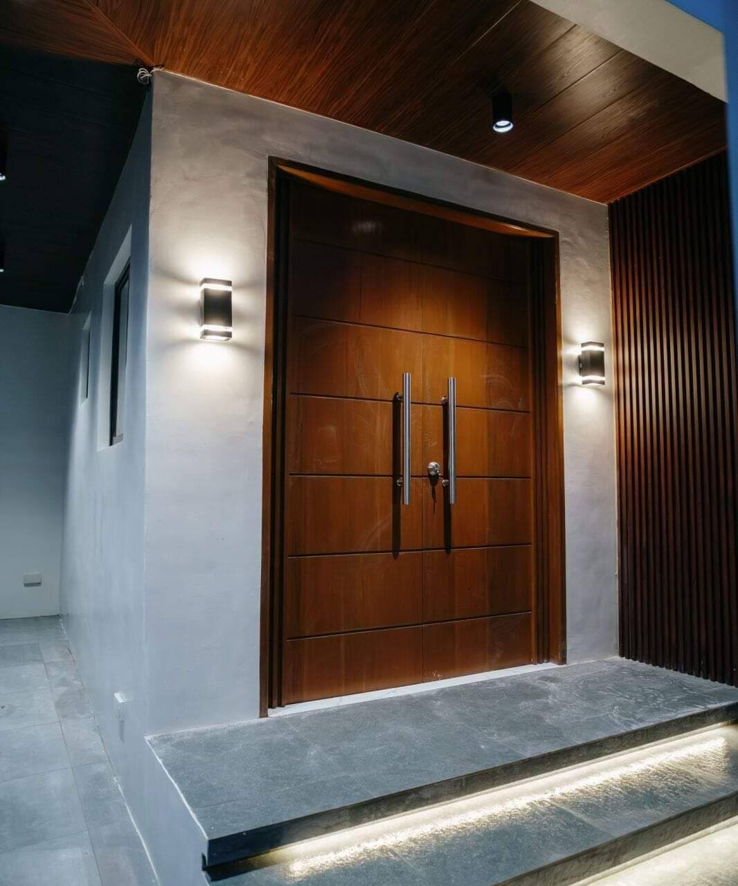 *Solid Wood Mahogany door Exterior and HDF Door for Interiors and Stainless Door knobs and a Big 2 Door Solid Mahogany Door in the Foyer