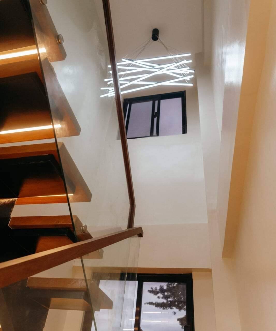 *Tempered Glass Windows and Glass Railing with Aluminum Powder Coated Paint on Stair Railings