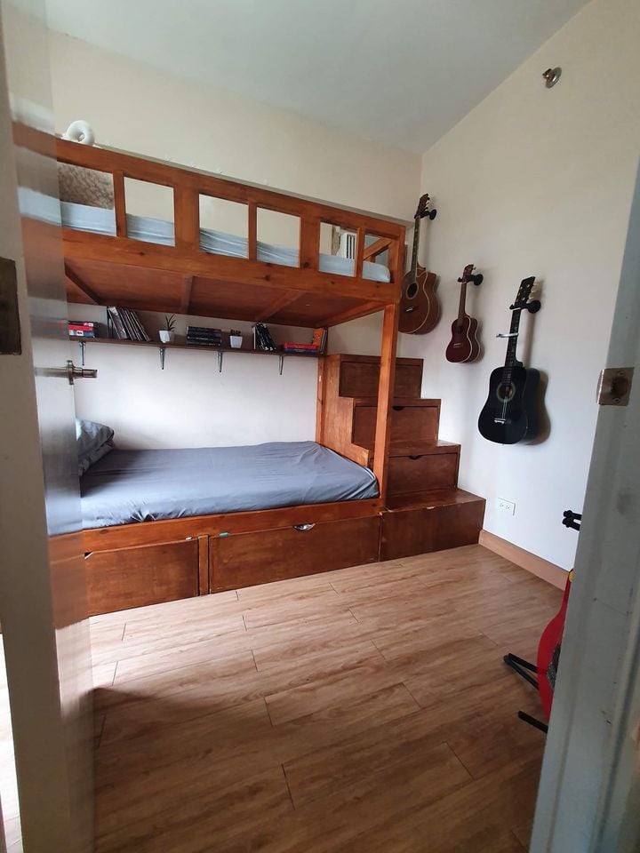 – Dining table, dining chair, built-in cabinets and double bed included